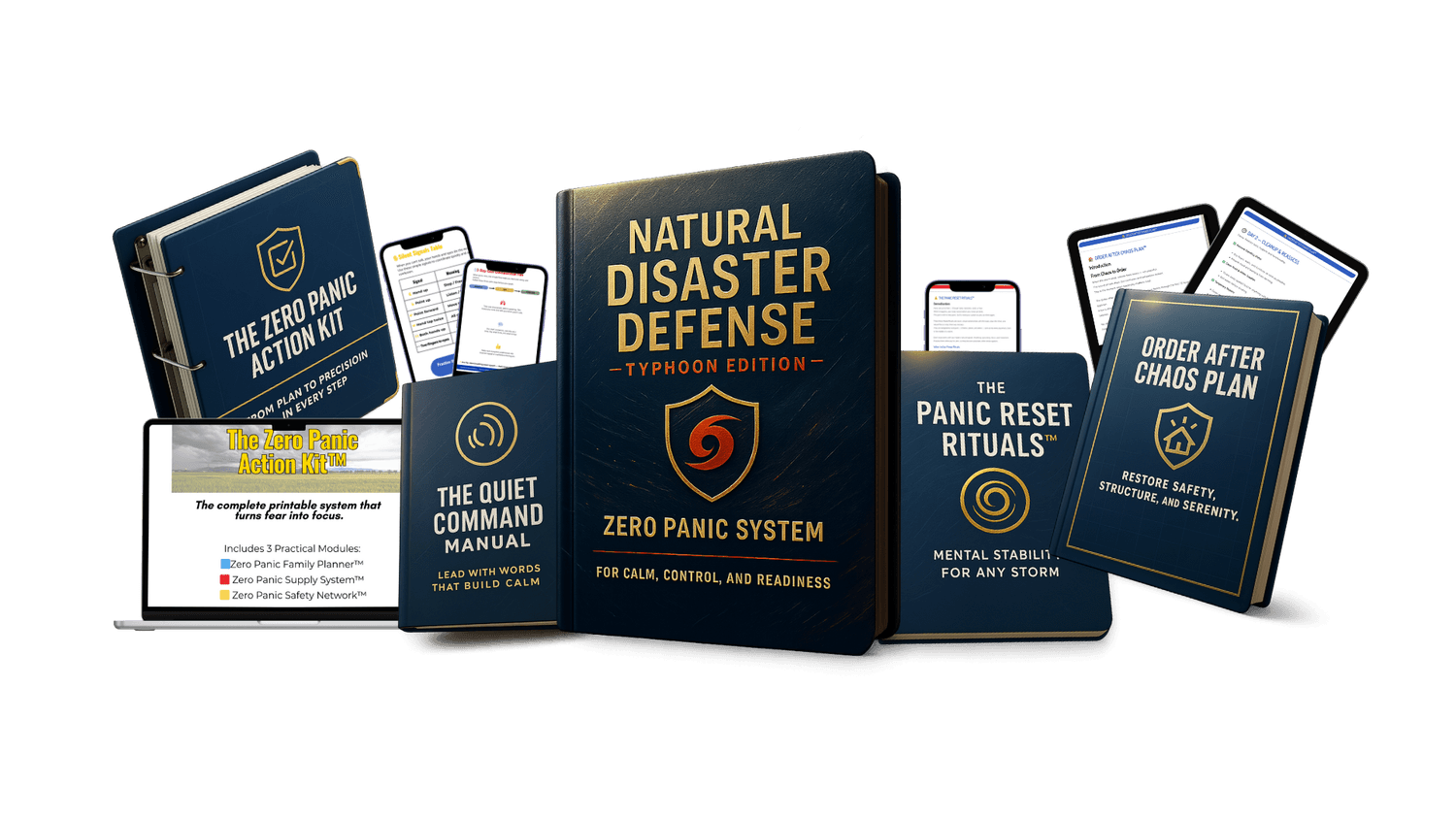 Youâll get the complete Zero Panic System⢠Manual plus four professional bonuses â The Zero Panic Action Kitâ˘, The Quiet Command Manualâ˘, The Panic Reset Ritualsâ˘, and The Order After Chaos Plan⢠â all designed to keep you calm, prepared, and coordinated during any typhoon.