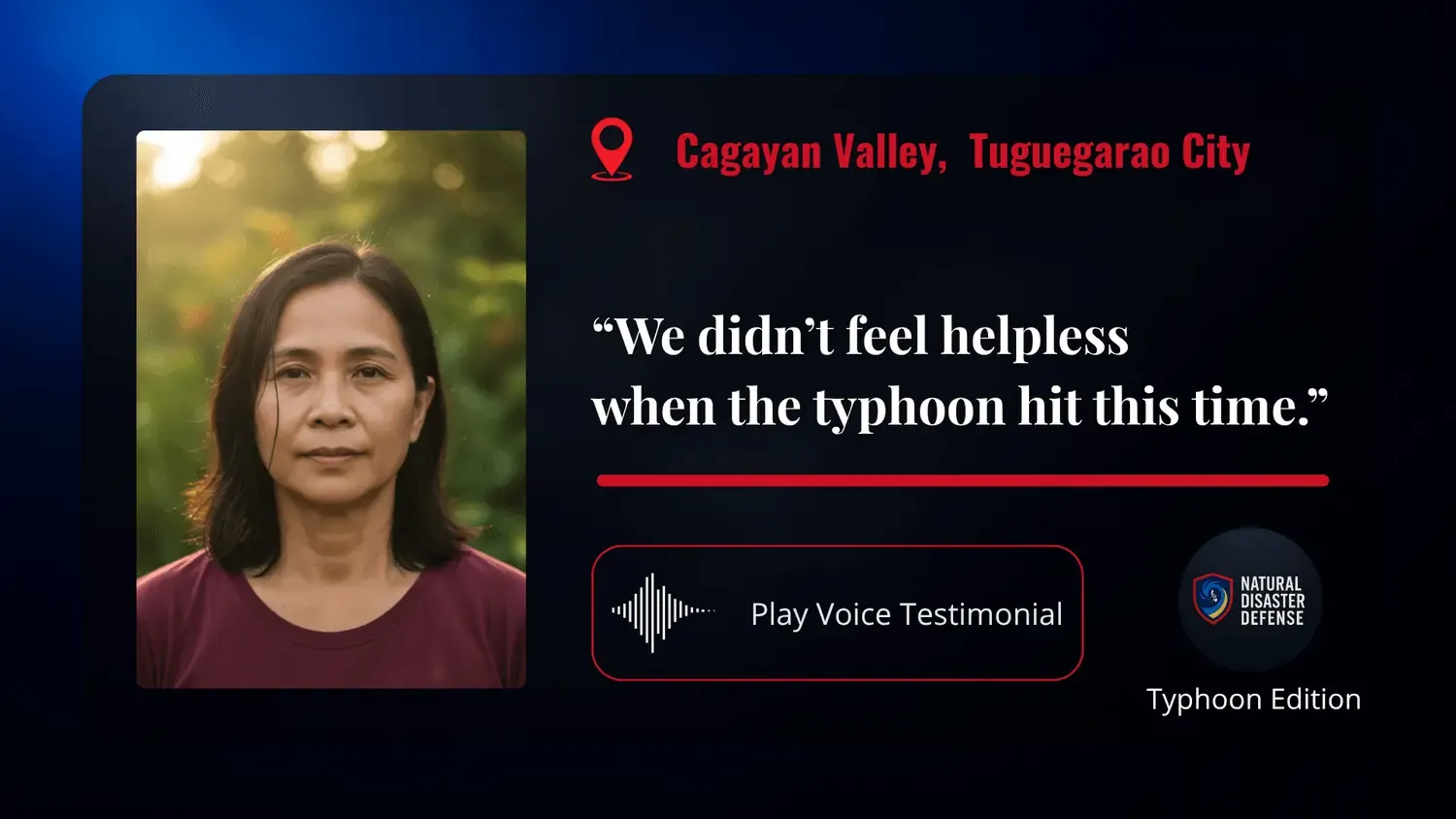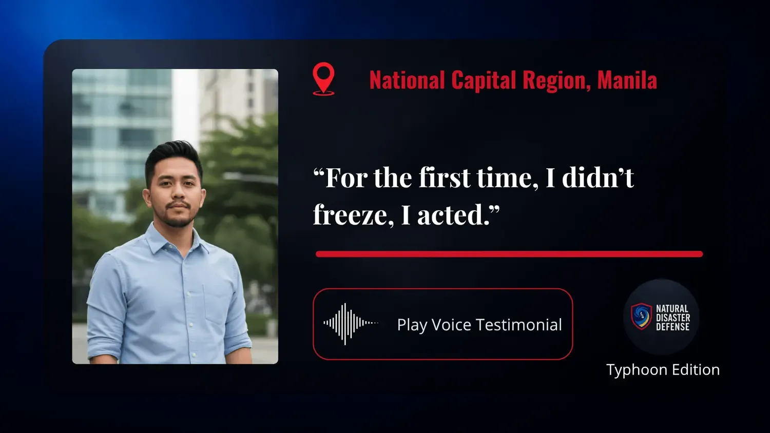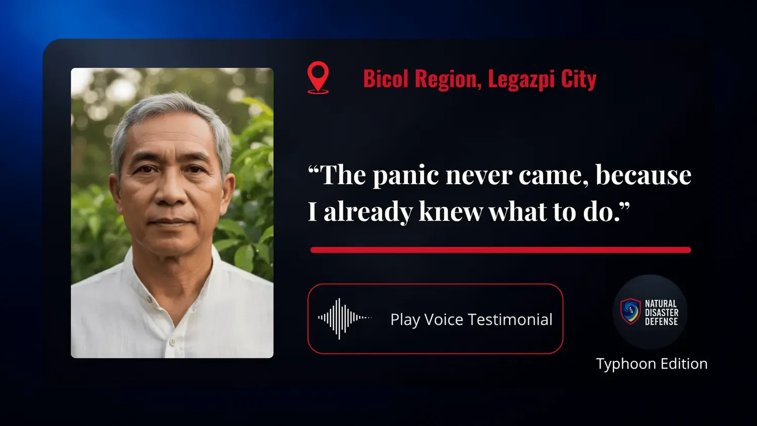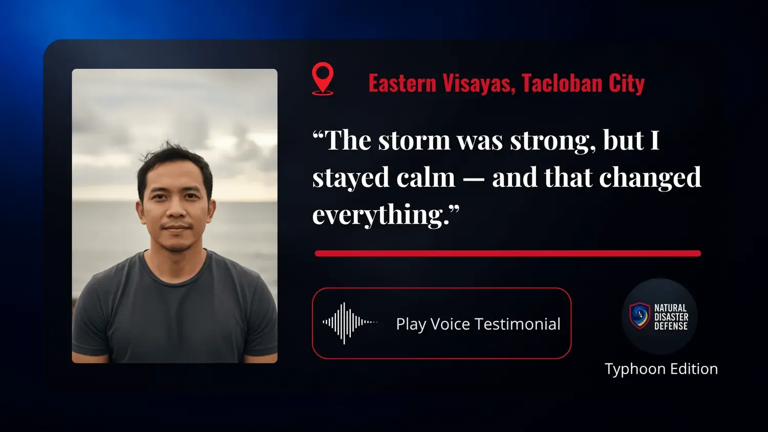 Natural Disaster Defense Typhoon Edition™ is the breakthrough digital system built to transform fear into readiness, empowering every Filipino to face the storm with clarity, control, and calm.